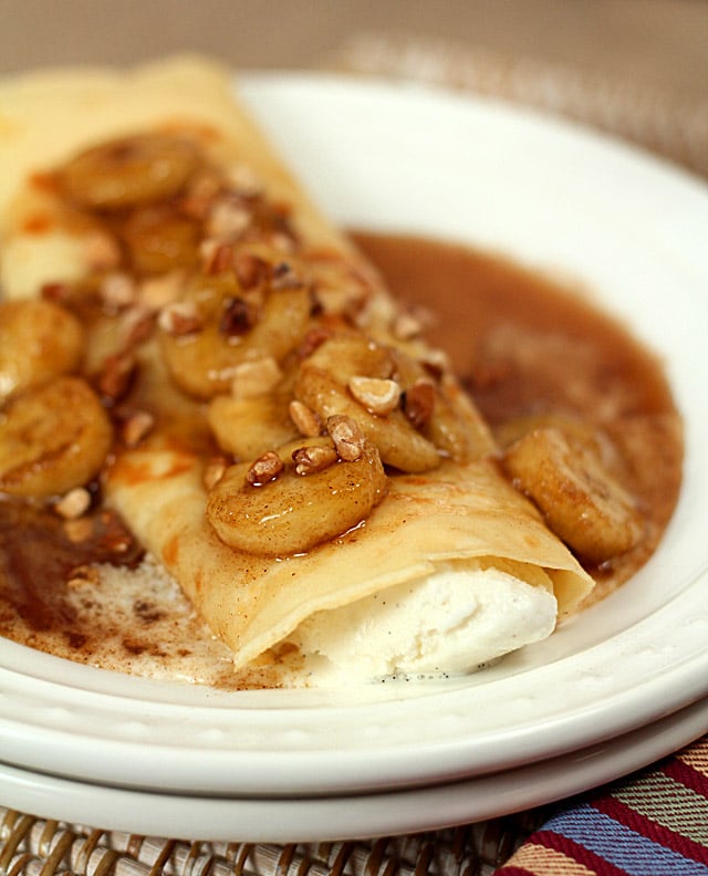 Classic sweet crepes served with banana, berries, or fruits of your choice along with chilled ice cream and drizzled with hot caramel sauce.
