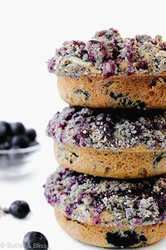These Baked Blueberry Streusel Donuts are soft and tender cake donuts with hints of brown sugar and cinnamon.