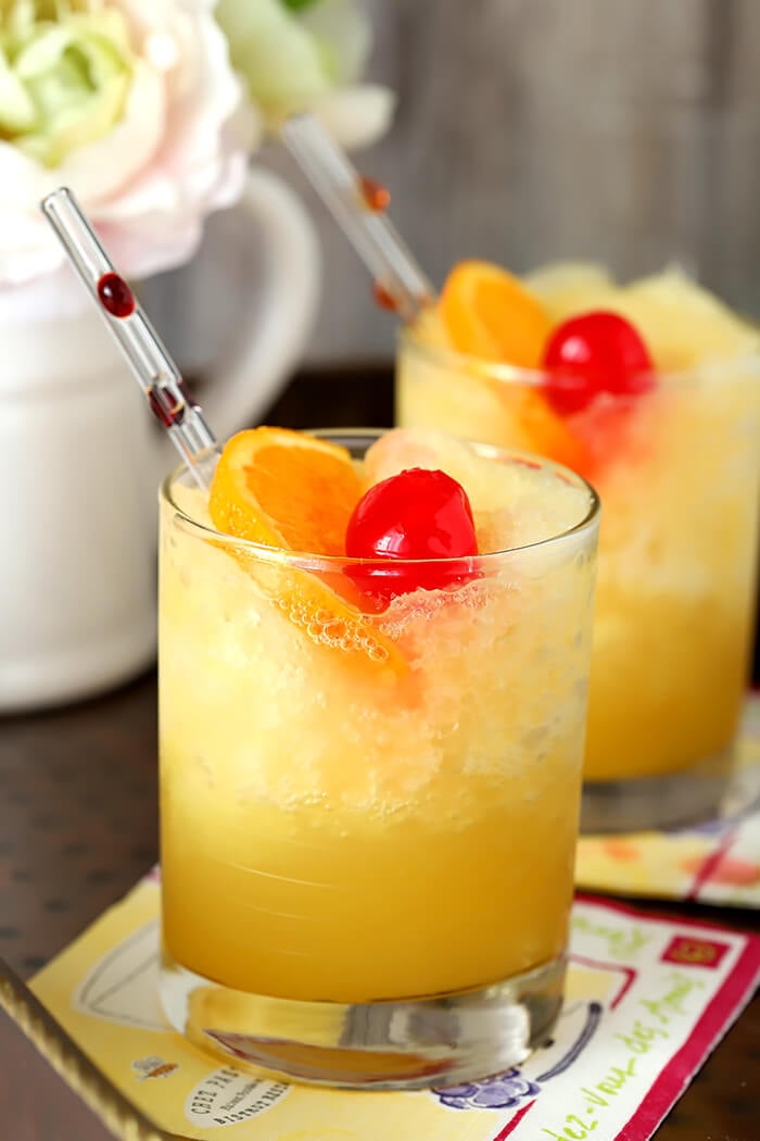 The Wisconsin Brandy Slush is a midwest classic featuring an icy mix of fruit juice, tea, and brandy.