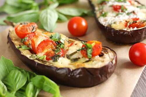 Caprese stuffed aubergines, filled with fresh mozzarella, juicy roasted tomatoes, and fresh basil - these are so easy to make and so delicious!