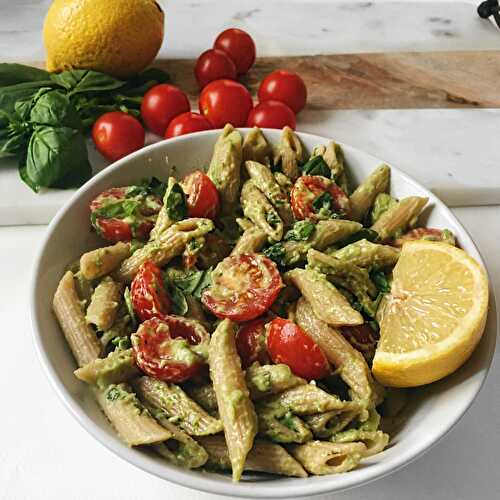 This pasta with creamy vegan basil sauce is so creamy and packs a tonne of flavour! Served with your favourite pasta.