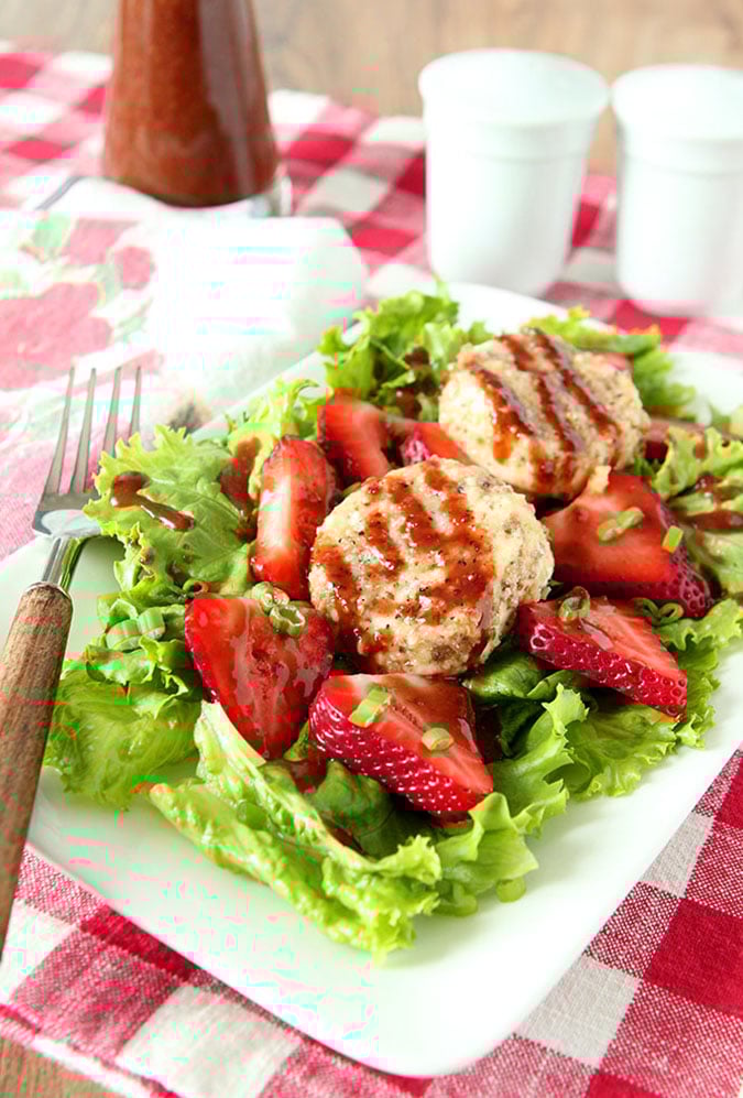 This strawberry spinach salad is packed with sweet juicy strawberries, crunchy candied pecans and tangy goat cheese.