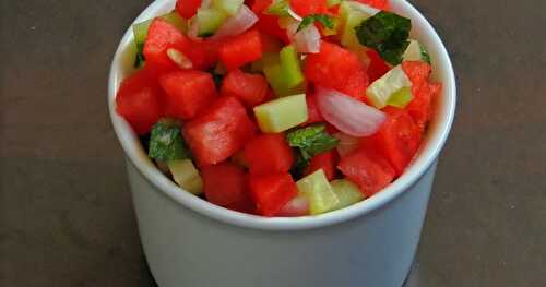 Watermelon adds the dazzle to this refreshing summertime salad.