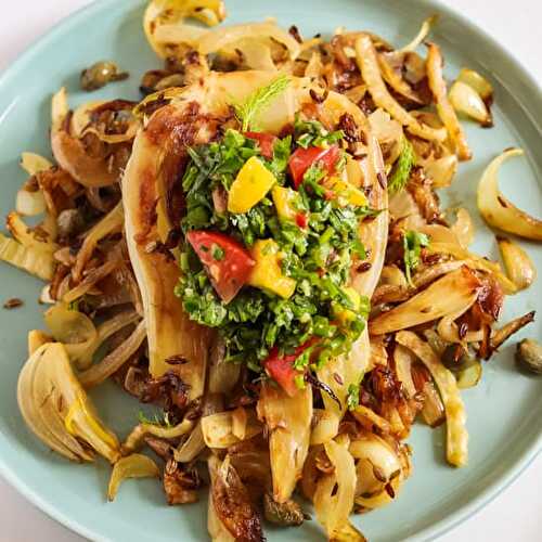Roasted fennel with mango salsa is an explosion of flavors and textures into your mouth.