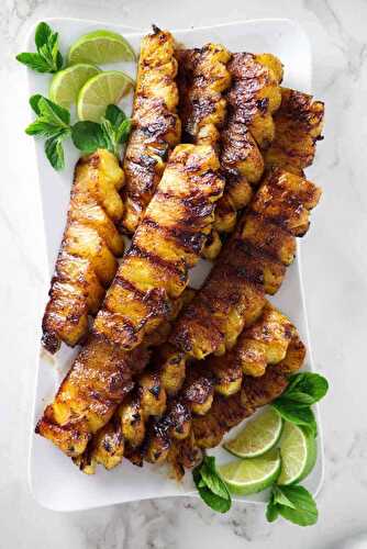 Sweet caramelized grilled pineapple with cinnamon sugar is a healthy, fat-free dessert that is fast and easy to make.