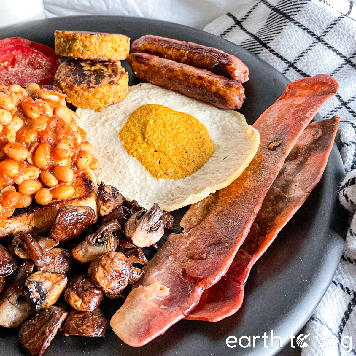 Vegetarian full English breakfast - who said a fry up is just for the meat-eaters?! Add grilled halloumi and asparagus for a tasty vegetarian full English.