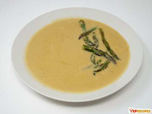 A luscious soup with roasted asparagus and cream, topped with Parmesan Cheese.