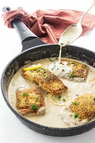 Pan fried chicken smothered in an addictively delicious tangy lemon butter sauce, with hints of capers and fresh herbs.