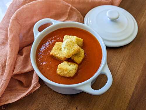 This easy slow cooker tomato soup is made with canned tomatoes, onion, garlic, and butter (no cream) for deliciously simple flavor in every bite.