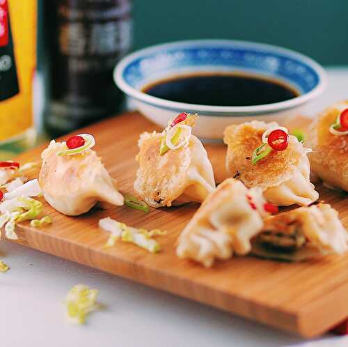 Easy to make, and delicious to eat, these little chicken potstickers gyoza with green onion, cabbage and Chinese seasonings are perfect.