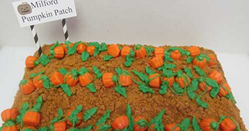 These pumpkin patch Halloween cookies are buttery chocolate chip cookies baked on a sheet pan, smothered with chocolate frosting and Oreos, then decorated to look like a pumpkin patch.