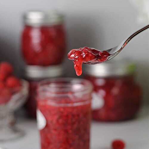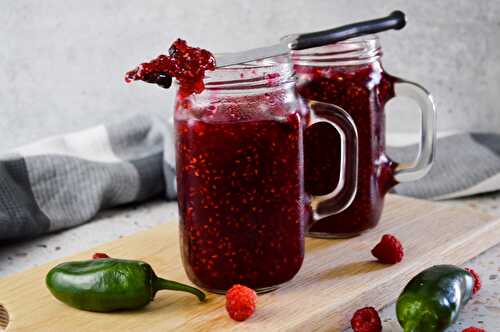 This delicious Small Batch Raspberry Jalapeno Jam is a little sweet, a little spicy, and perfect as an appetizer or as a glaze.