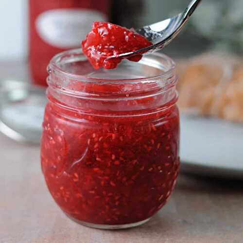 Homemade Sugar Free Raspberry Jam is super easy to make and has only 1g net carbs per serving.