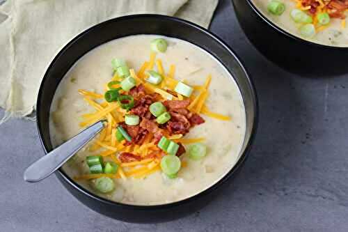 This easy slow cooker loaded baked potato soup is so thick and creamy, it's the ultimate comfort food dinner for cold fall and winter nights.