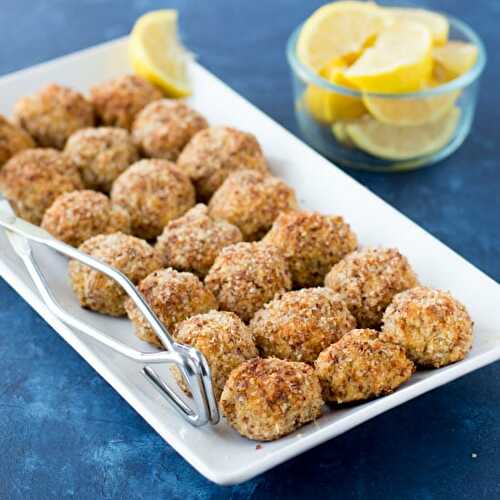 Crab cake bites are baked to a golden brown slightly crunchy perfection instead of fried.