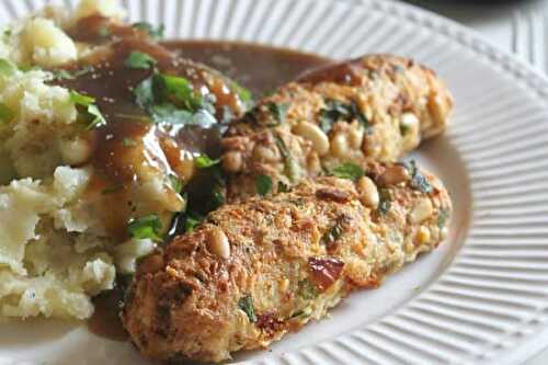 These sun-dried tomato and pine nut sausages are the perfect vegetarian sausage to use in hot dogs or bangers and mash.