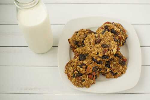 Healthful cookies with toasted nuts, gluten free oats, dried fruit, and a touch of honey.