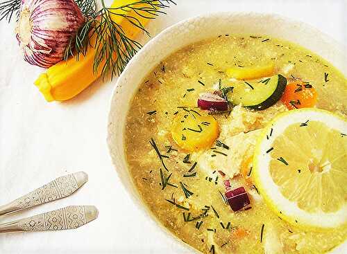 Greek Chicken Soup with Semolina and Vegetables: Avgolemono.