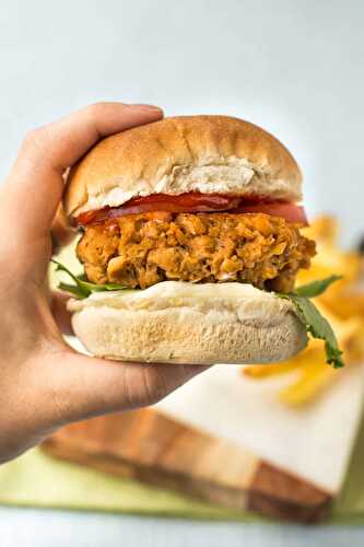 These vegan 'chicken' burgers are made with TVP for the perfect 'meaty' texture! They're so easy to make, and perfect with your favourite burger sauce.