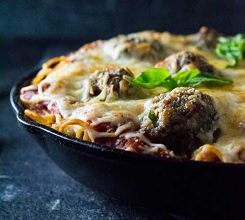 Gnocchi and Meatball Bake Recipe: Ready in under 30 minutes, this meatball bake with fried gnocchi is the perfect midweek meal!