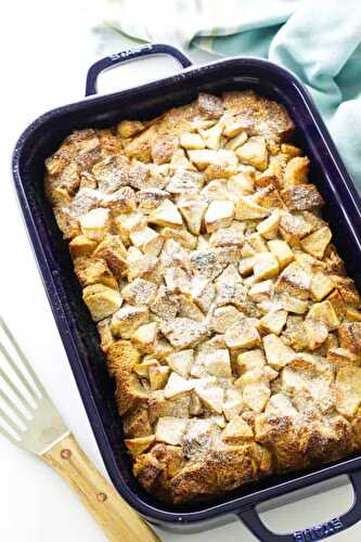 This is a twist on the classic French toast breakfast treat! Overnight French Toast Bake is made with fresh apples and Brioche bread cubes that are soaked in a creamy egg custard.