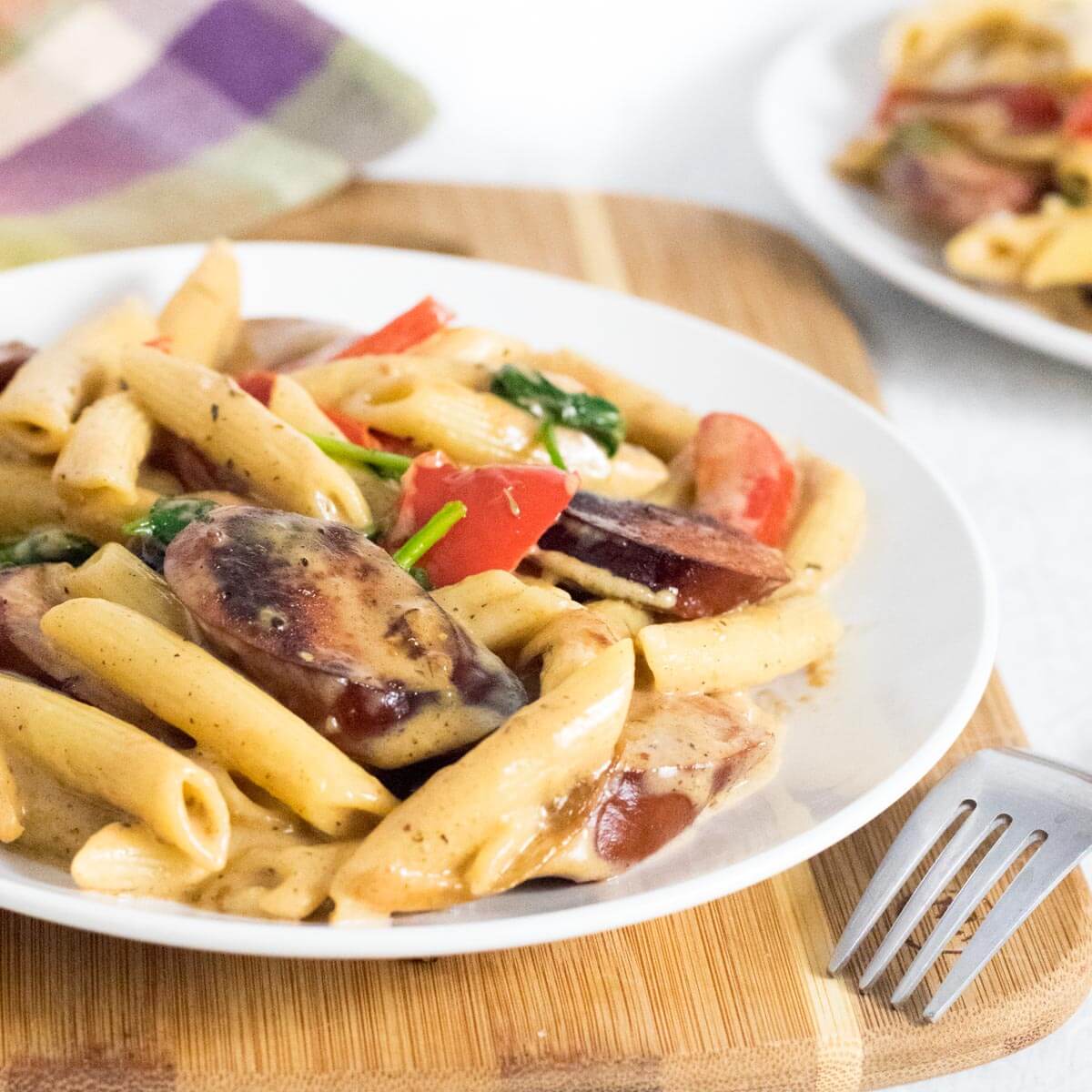 Creamy pasta with vegetables is a versatile, quick and easy weeknight dinner.