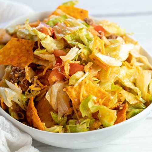 This taco salad with Doritos has that classic taco flavor that you crave with a satisfying crunch in every bite.