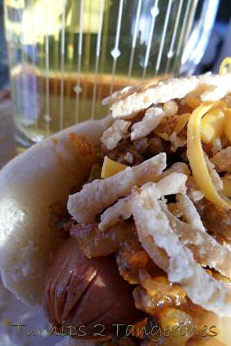 Perfectly baked brats on a sandwich bun, topped with stone ground mustard and some sautéed bell peppers, served with a side of potato salad or sauerkraut will make your inner lederhosen happy.