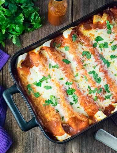 These tasty, quick, and incredibly easy Cheese Enchiladas with red sauce are the weeknight Tex-Mex dinner you’ve been looking for! I make my own enchilada sauce and fill the enchiladas with lots of cheese so they’re the most perfectly flavorful enchiladas.