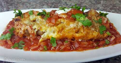 Enchiladas is Mexican street food, and is simply corn tortillas dipped in chili sauce and eaten without fillings.