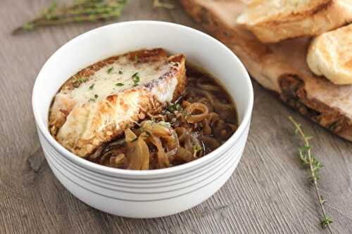 Let your appliance do all the hard work to make this spectacular slow cooker French onion soup! It's rich and flavourful, and topped with a giant cheesy crouton.