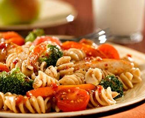 This colourful pasta is loaded with flavour and just as good whether it’s eaten warm or cold
