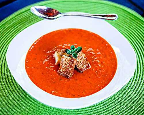 This Roasted Red Pepper and Tomato Soup is brimming with the rich flavors of roasted produce.