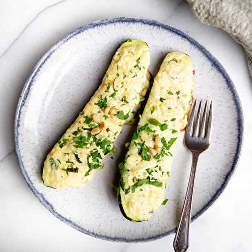 These cheesy vegetarian zucchini boats feature fresh zucchini, creamy Comté cheese, ricotta, herbs and garlic.