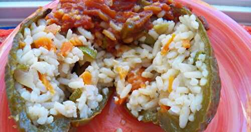 Simple stuffed peppers vegetarian style are filled with plant based protein.