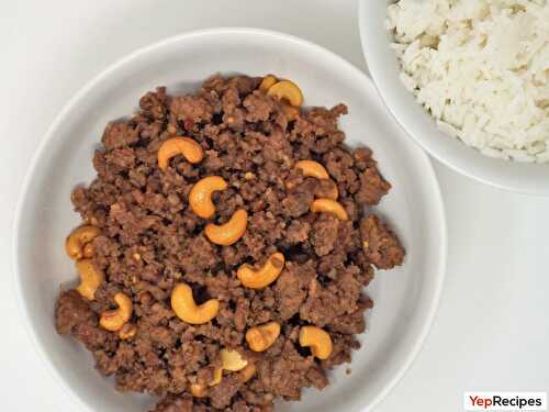 Ground pork seasoned with Chinese five-spice powder and stir-fried with cashews and a garlic sauce.