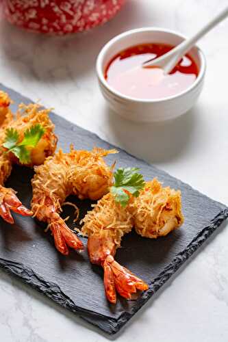 Super crispy fried vermicelli noodles wrapped around large, juicy shrimp.