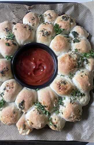 A garlicky pesto cheese ball made with Parmesan, mozzarella, and cream cheese.