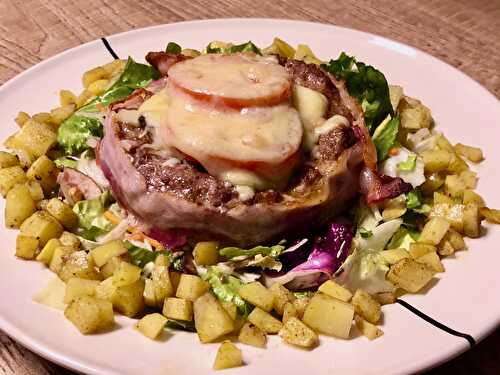 This juicy hamburger nest with cubed potatoes is a surprising alternative for the classic dry burger in a dry bread.