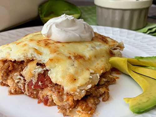This is a quick and easy version of Mexican lasagna, I decided to use only pinto beans in this recipe and also I used brown rice tortillas instead of corn tortillas.