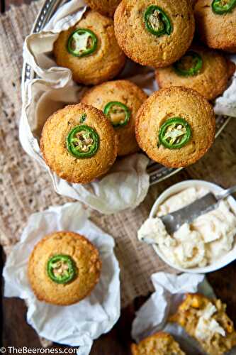 Jalapeno Cornbread Beer Bread Muffins with Salted Beer Honey Butter