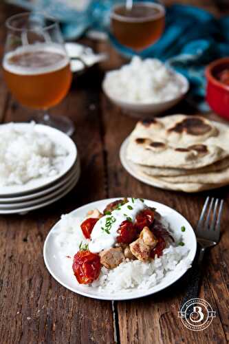 Moroccan Beer Chicken with Herb Yogurt Sauce A summer evening dinner party on the patio, the perfect guest list, beautiful food, the right playlist, and of course, the right offerings in the beer tub.