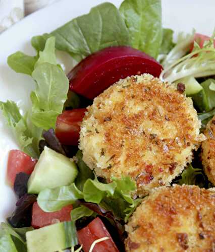 Beet goat cheese salad with rounds of warm breaded goat cheese is spin on a favorite that I order from a local cafe every time I go!