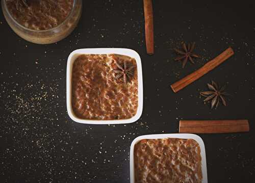 A delicious creamy brown rice pudding that is flavored with pumpkin pie spice.