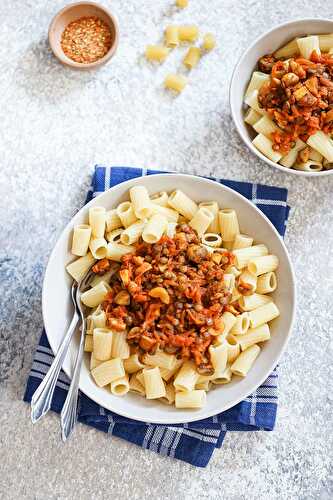 The combination of vegan lentil bolognese and pasta will turn into an unforgettable taste.