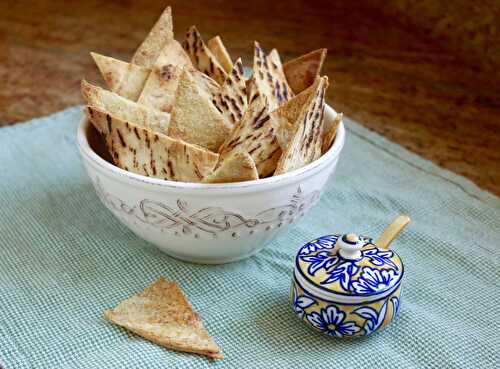Toasted Za'atar Pita Chips are tasty triangles of za'atar seasoned pita bread toasted to crispy perfection.