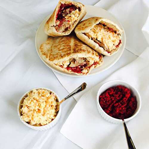 This lamb pita pocket (sandwich) with horseradish sauce & coleslaw is such a great lunch treat, healthy and delicious option for a picnic to share.
