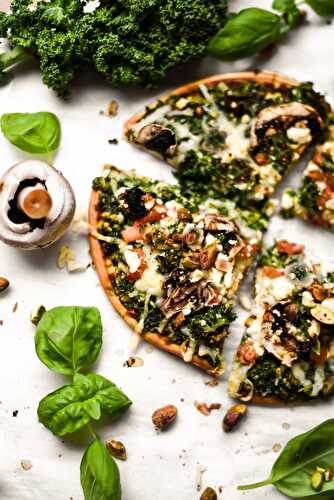 These individual pita pizzas topped with homemade pesto make lunch or dinner fast and easy without sacrificing any of the flavor