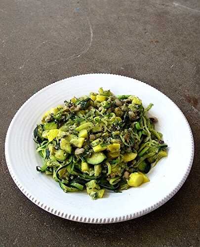 These spiralised zucchini and carrots noodles dish with feta cheese and olives can be your absolute summer winner dish.