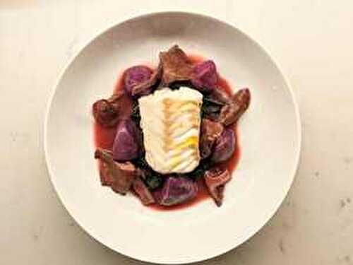 Hake with crunchy skin served on roasted potatoes and asparagus with a few capers to salt things up! This is like any fish recipe should be; a colorful filled with textures.